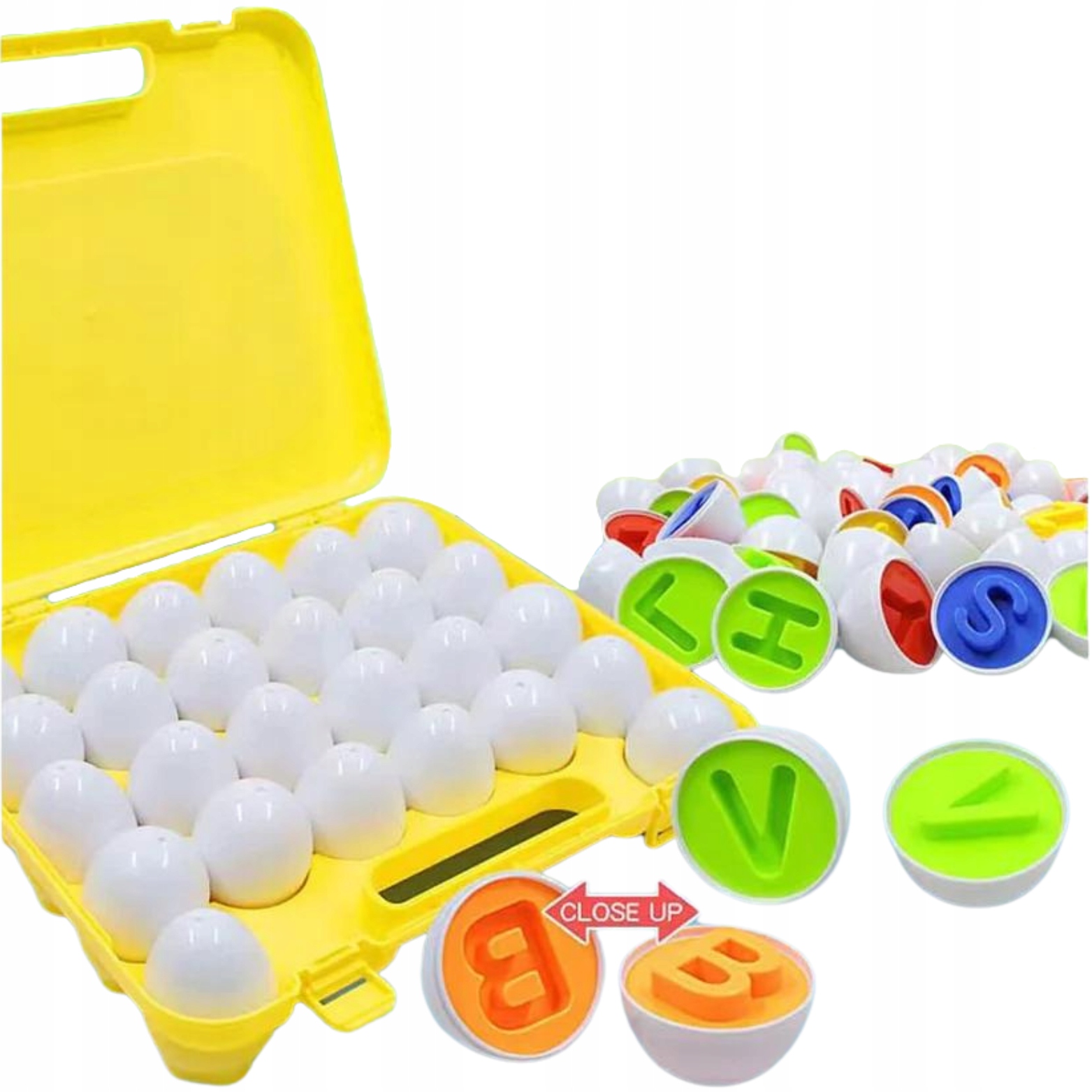 Duży Zestaw Układanka Gra Edukacyjna Sorter Montessori Klocki Jajka Litery