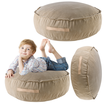 Pufa Dziecięca Okrągła Sztruksowa Piaskowa Zdejmowany Pokrowiec MeowBaby