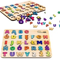 ( ilość produktów: 7 )Alfabet Drewniana Układanka Literowa Łamigłówka Wyrazy Elementy Kształty