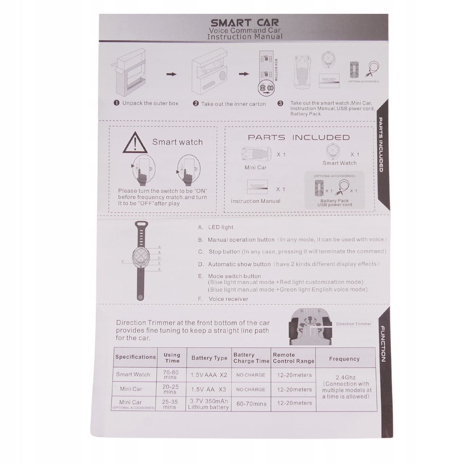 Auto Samochód Zdalnie Sterowany Zegarkiem Głosem Akumulator Kabel Światło