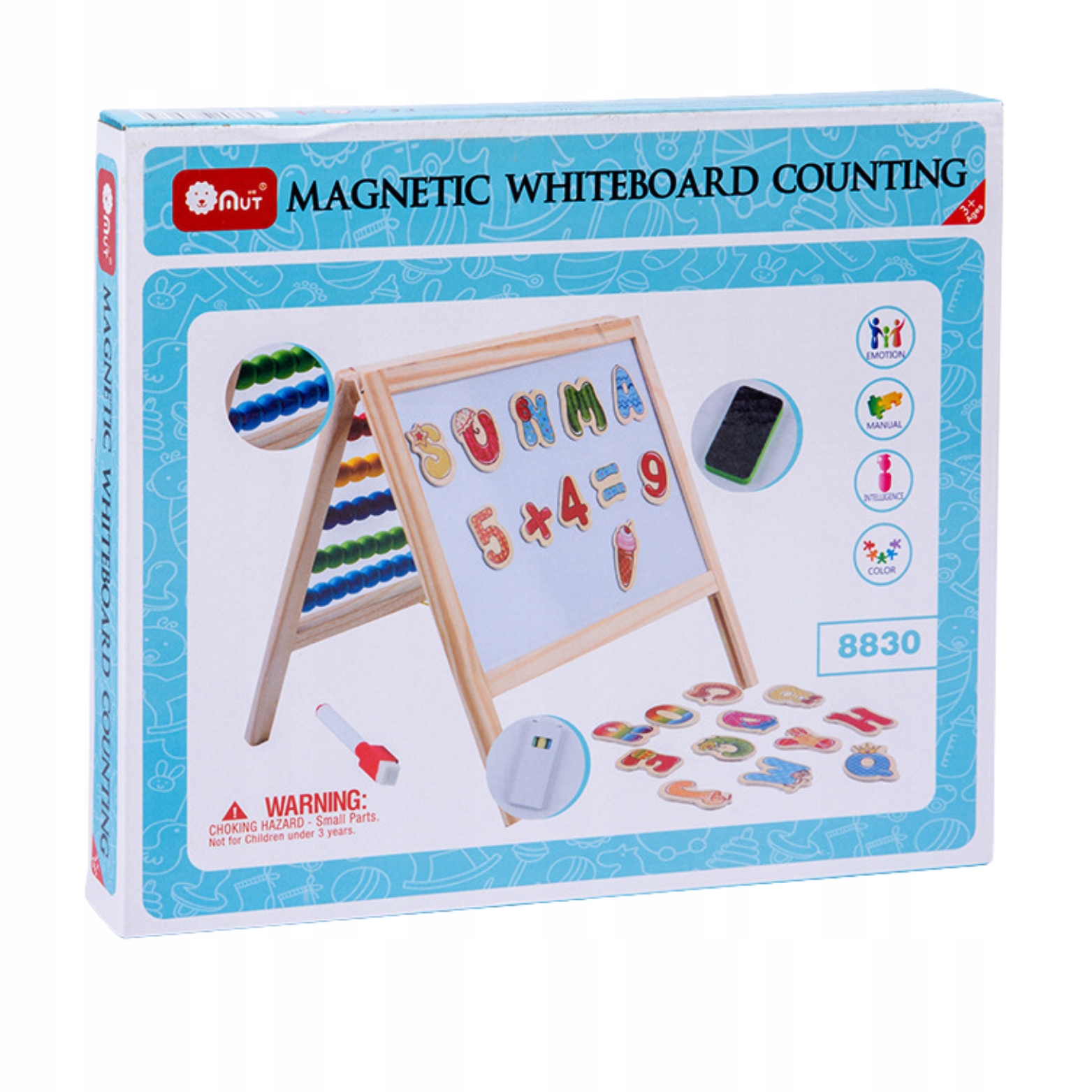 ❤️Tablica posiada białą magnetyczną tarczę z cyframi od 1 do 10 i literami od A do Z w celu wykonywania operacji matematycznych i tworzenia ciągów słów. Druga część to liczydło do nauki pierwszych działań matematycznych.❤️