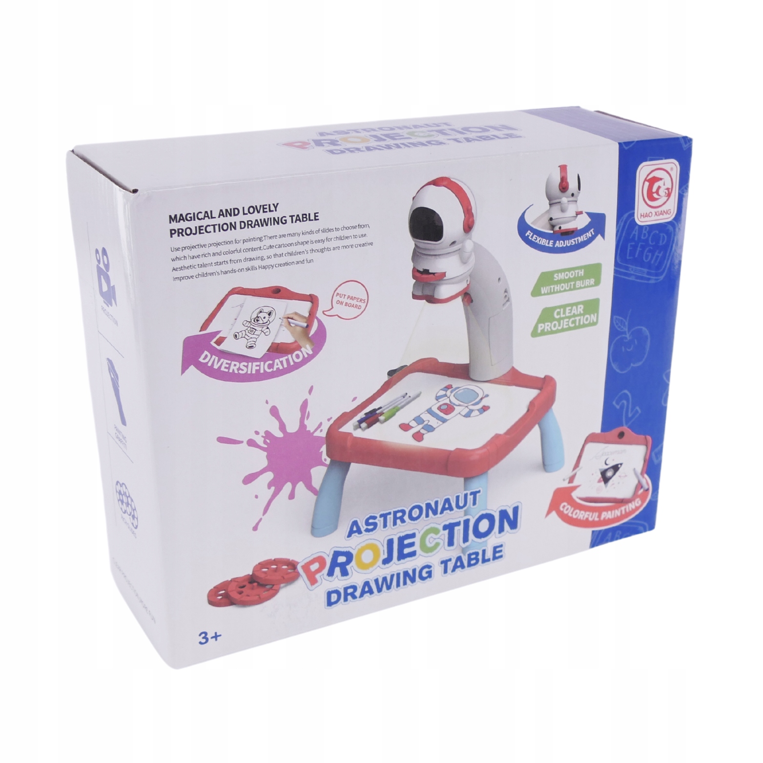 ✨ Ten unikalny stolik posiada wbudowany projektor, który umożliwia projekcję różnorodnych obrazów na powierzchni stolika. Dziecko może wybierać spośród wielu tematów, w tym motywów astronauty, które wprowadzą je w kosmiczną podróż pełną wyobraźni i kreatywności. Robot ma wygodny włącznik, służący do zapalenia światła, które stworzy odpowiednią atmosferę do twórczych eksploracji. Po włożeniu krążka ze slajdem, obrazy zostaną wyświetlone na podstawie projektora, dając dziecku możliwość odrysowywania ich w notesiku lub tworzenia bezpośrednio na podstawie.