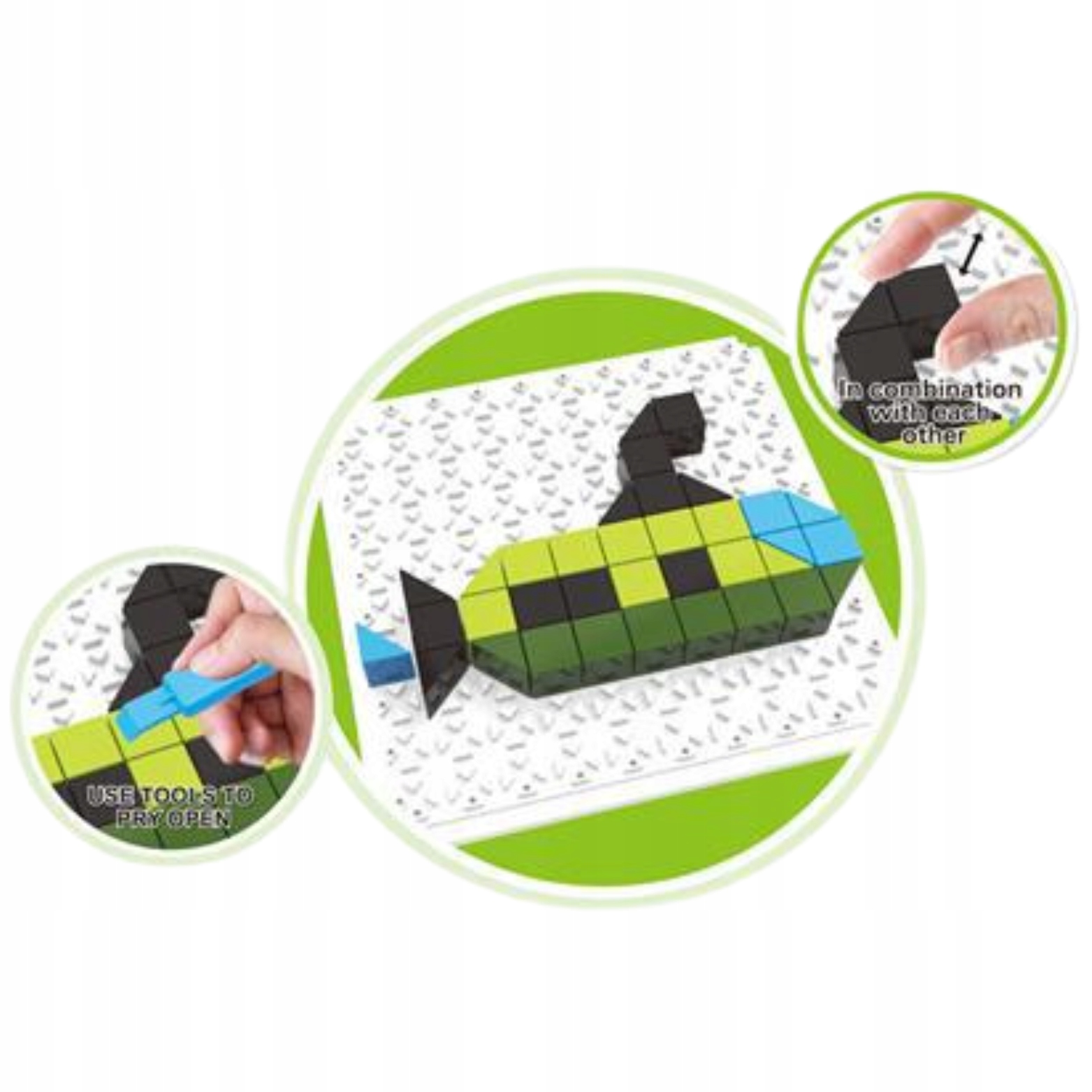 ➡️ klocki w kolorach - jasnozielony, ciemnozielony, czarny, niebieski