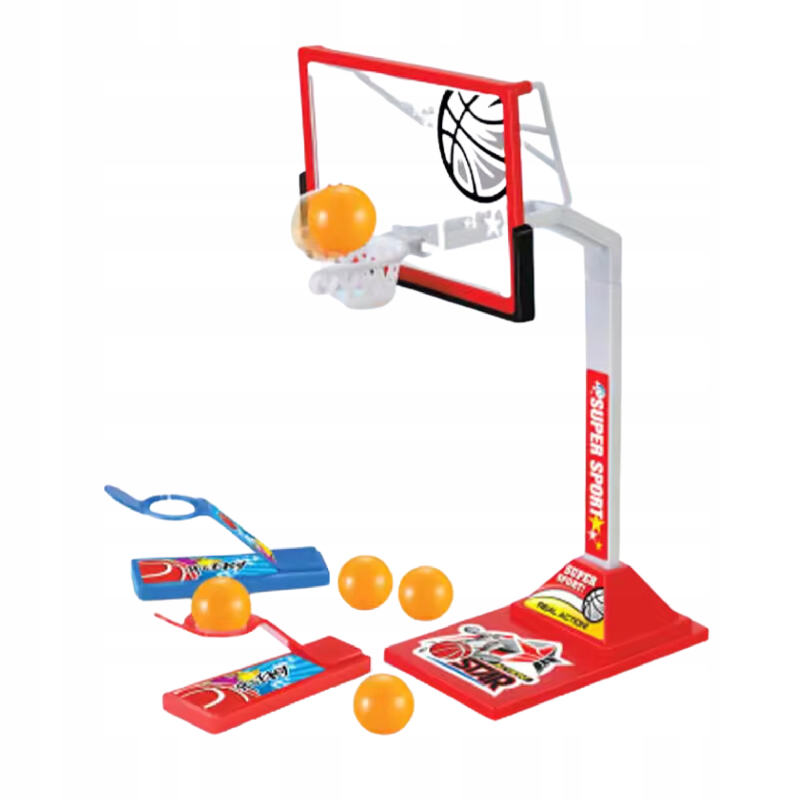 ⭐W zestawie znajdują się 4 piłeczki do kosza oraz 2 wyrzutnie. Gra polega na ustawieniu piłeczek na wyrzutni, a następnie trafienie z nich do kosza. Wygrywa osoba z największa ilością trafionych koszy.