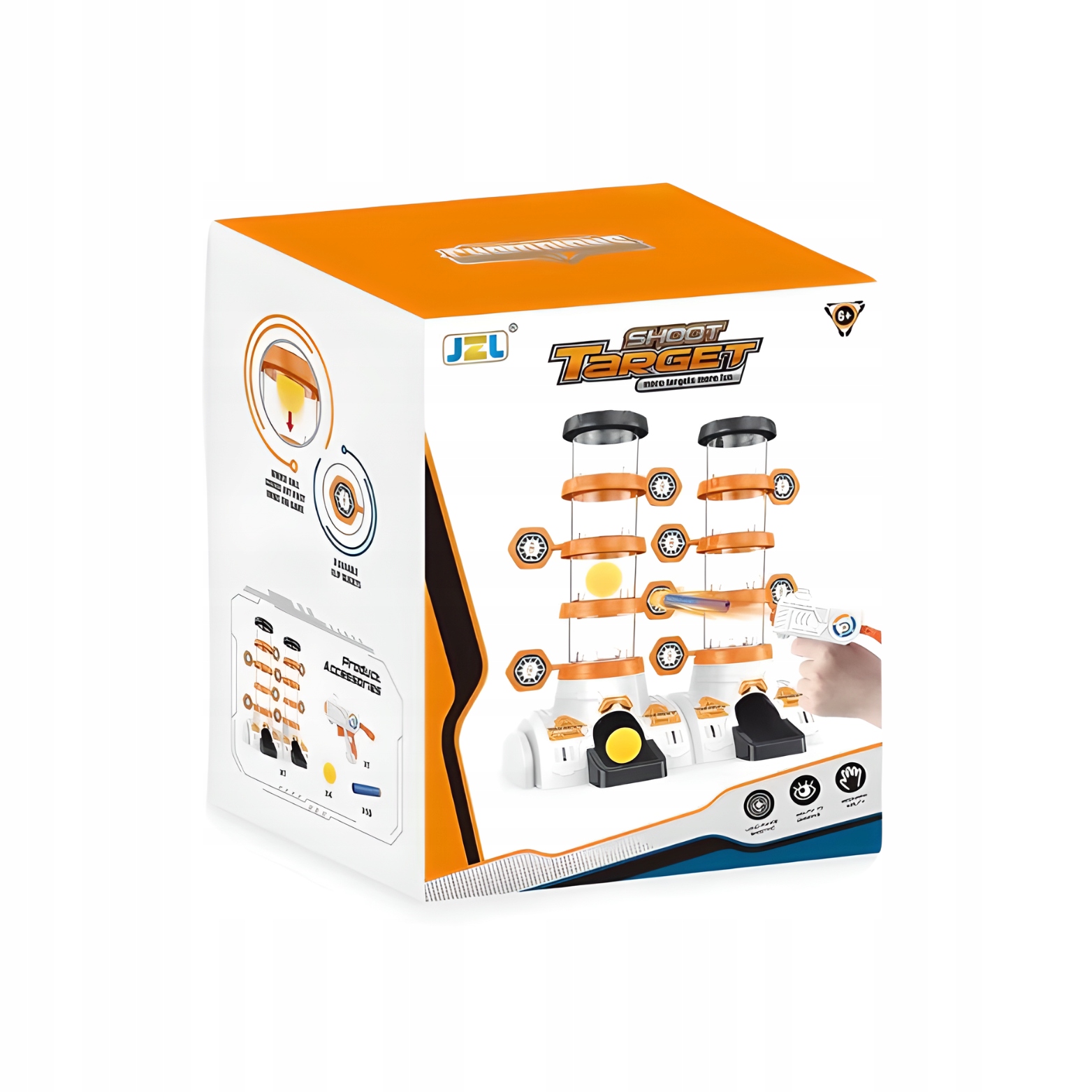 ✨Zestaw posiada dwa cylindry, na każdym z nich znajduje się 8 tarczy. W każdym cylindrze należy umieścić jedną piłkę. Kiedy gracz trafi w cel, piłka spada poziomami na dół. Ten z graczy, który jako pierwszy trafi celnie we wszystkie tarcze i sprowadzi piłkę na sam dół wygrywa grę!