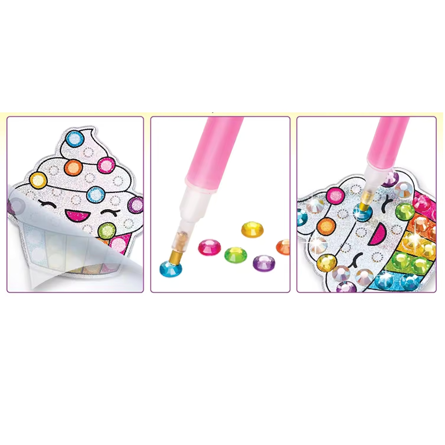 ❤️Mozaika diamentowa polega na tworzeniu niesamowitych wzorów za pomocą bajecznie kolorowych diamencików. Dzieci mogą wybrać odpowiednie kolory i przenieść je na wybrany szablon, używając specjalnego aplikatora z woskiem klejącym. Po ułożeniu wszystkich elementów otrzymują piękną ozdobę z motywem słodyczy, którą mogą umieścić na torebce, zawieszce, szybie czy nawet ozdobić swoje ulubione zeszyty czy teczki.❤️