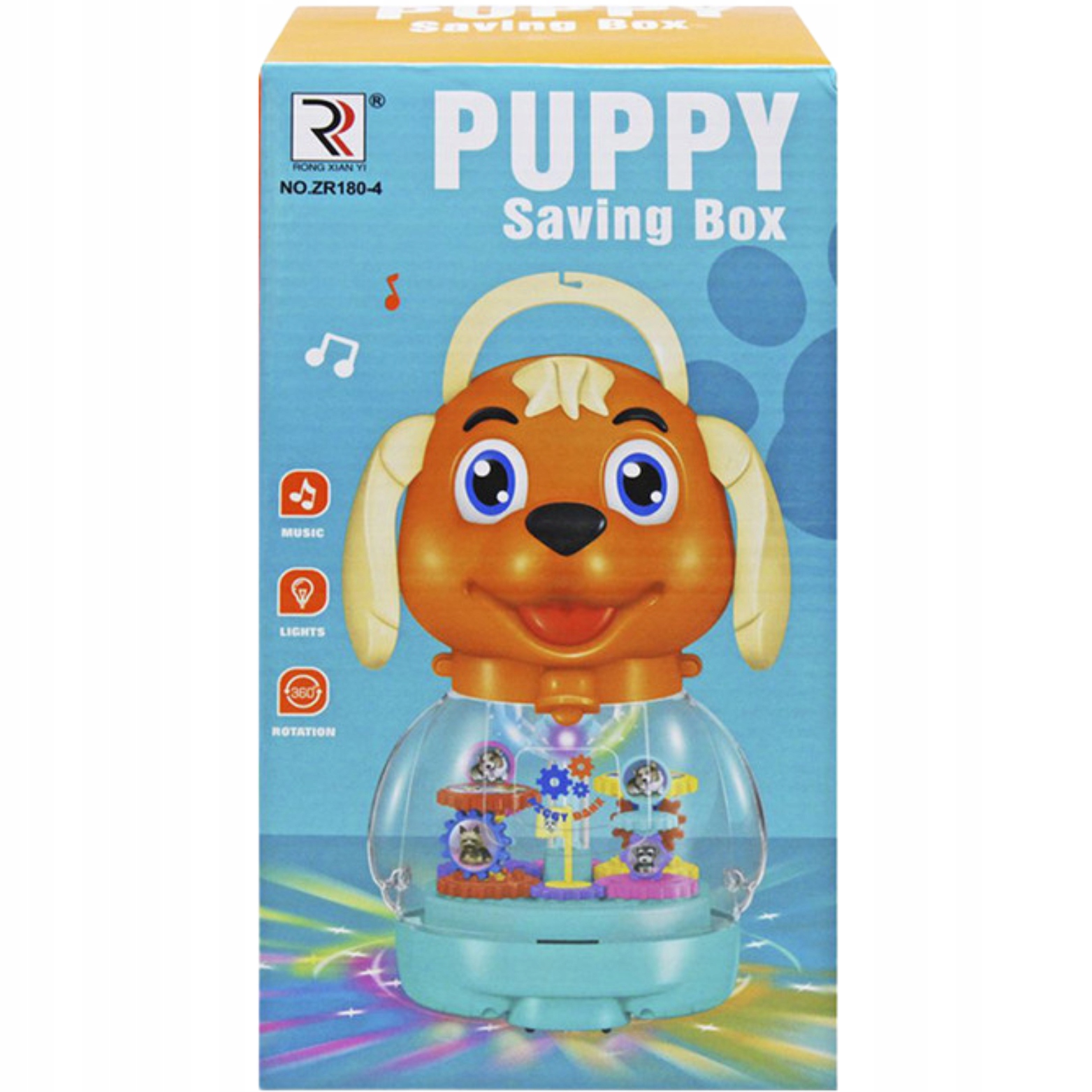 ✨ Zabawka zawiera kolorowe światełka, odtwarza muzykę i wesołe melodie, wykonuje obroty o 360° oraz potrafi się przemieszczać. Dodatkowo, posiada uchwyt do przenoszenia, który ułatwia zabawę i transport zabawki. Specjalna dziurka na pieniądze umieszczona na głowie pieska zachęca dzieci do nauki oszczędzania pieniędzy.