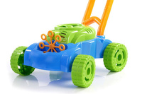 Przecudowna kosiarka zabawkowa, która dmucha bańkami mydlanymi podczas toczenia.