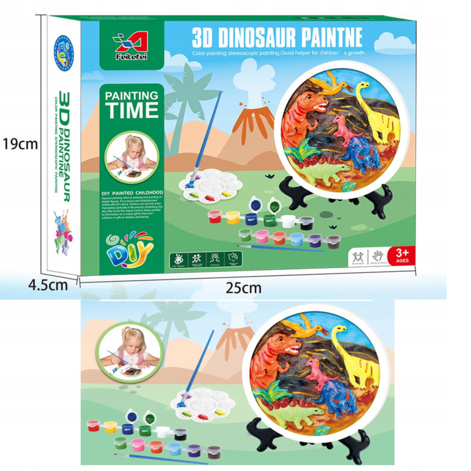 ✨ W zestawie znajduje się gipsowa podstawa z wzorem dinozaurów. Zabawka pozwoli nie tylko rozwinąć umiejętności artystyczne, ale także nauczyć się więcej na temat dinozaurów.