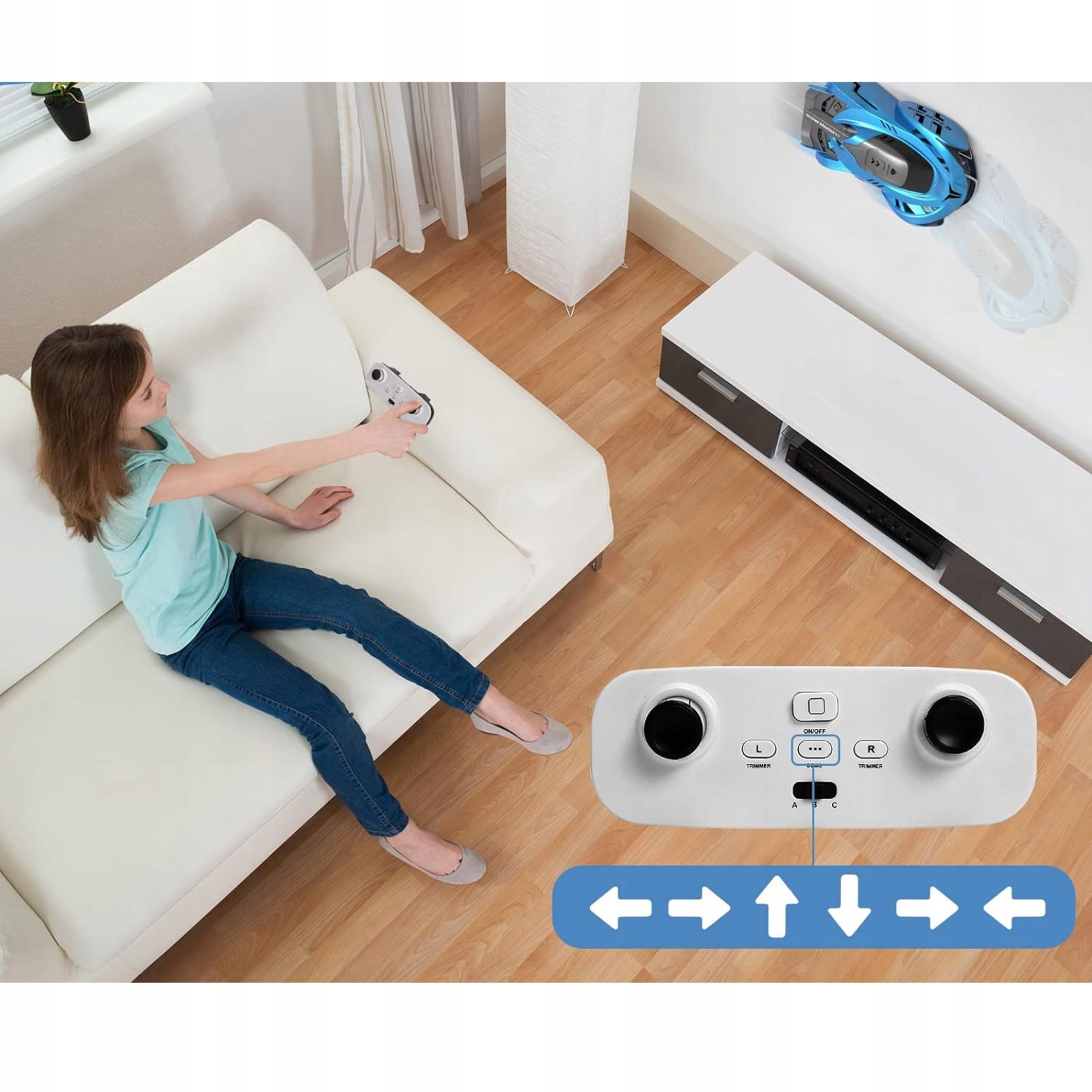 ➡️ Niemożliwy dla grawitacji: samochód może jeździć po wszystkich płaskich powierzchniach, zarówno poziomych, jak i pionowych, łamiąc wszystkie prawa grawitacji. Może poruszać się po podłogach, ścianach, suficie, szybach i lustrach, co zapewnia dzieciom fascynującą i ekscytującą zabawę.