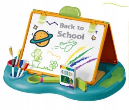 TABLICA DWUSTRONNA EDUKACYJNA STEMPELKI KREDOWA DWUSTRONNA STOLIK AKCESORIA