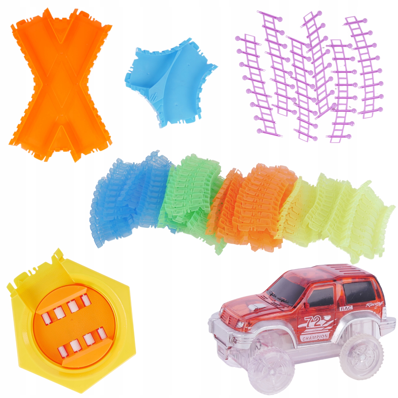 ➡️Różnorodność elementów: zestaw zawiera różne elementy, takie jak wzniesienia oraz 2 autka, co pozwala na tworzenie zróżnicowanych tras o różnym stopniu trudności i ekscytacji.