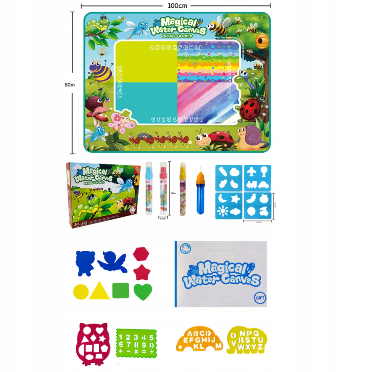 ⭐ Wielofunkcyjna mata wodna z motywem zwierząt - owadów to fascynująca zabawka, która zapewnia dzieciom niezapomnianą przygodę tworzenia pięknych obrazków bez użycia farb czy kred. Ta innowacyjna mata do malowania nie tylko sprawia, że proces staje się przyjemny, ale także utrzymuje czystość i porządek wokół siebie.