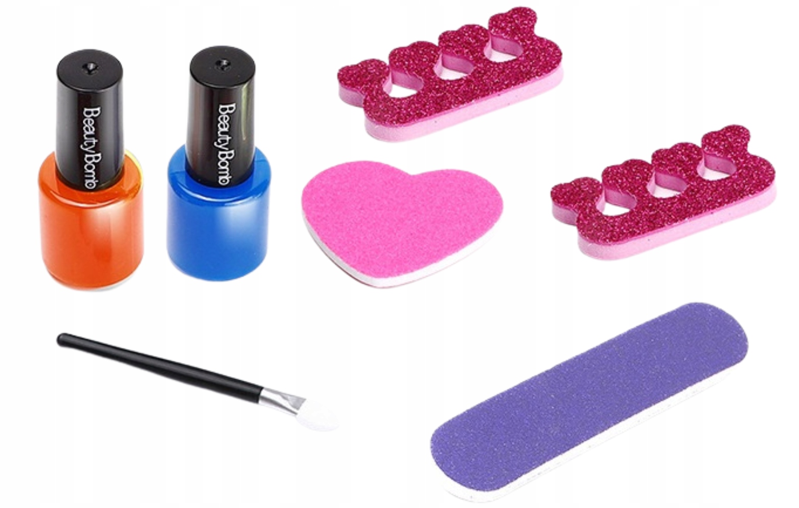 ⭐W zestawie znajdują się aż 2 lakiery w różnych, modnych kolorach a także błyszczące ozdoby, które sprawią, że paznokcie dziewczynki będą się wspaniale prezentować!