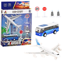 ZESTAW SAMOLOT LOTNISKOWY AUTOBUS ZNAKI DROGOWE ZABAWKA DLA DZIECI DIE-CAST