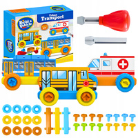 Klocki Konstrukcyjne Montessori Zestaw Budowanie Aut Śrubokręt I Akcesoria