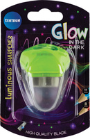 Temperówka plastikowa z dwoma ostrzami i pojemnikiem świecąca w ciemności