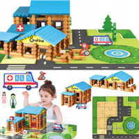 Duży Zestaw Klocki Puzzle Drewniane Do Budowy Szkoły Ogrodzenie Figurki
